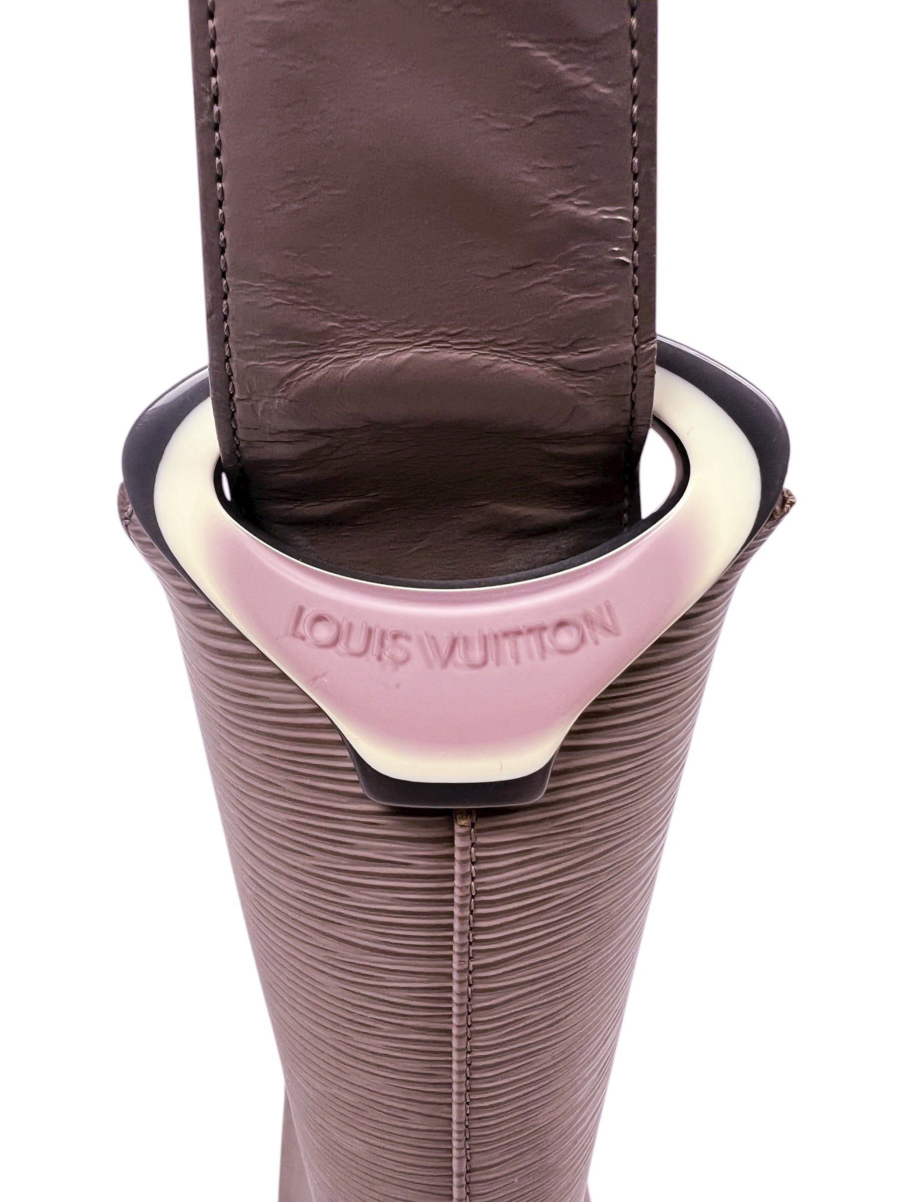 A coveted piece from Louis Vuitton's 2001 collection, this lilac epi leather bag exemplifies the house's commitment to refined craftsmanship. The signature textured epi leather, renowned for its durability and distinctive embossed pattern, develops a beautiful patina over time.