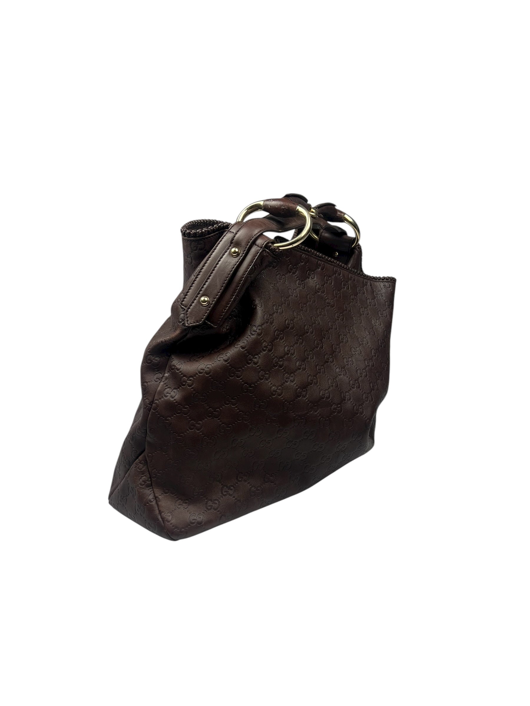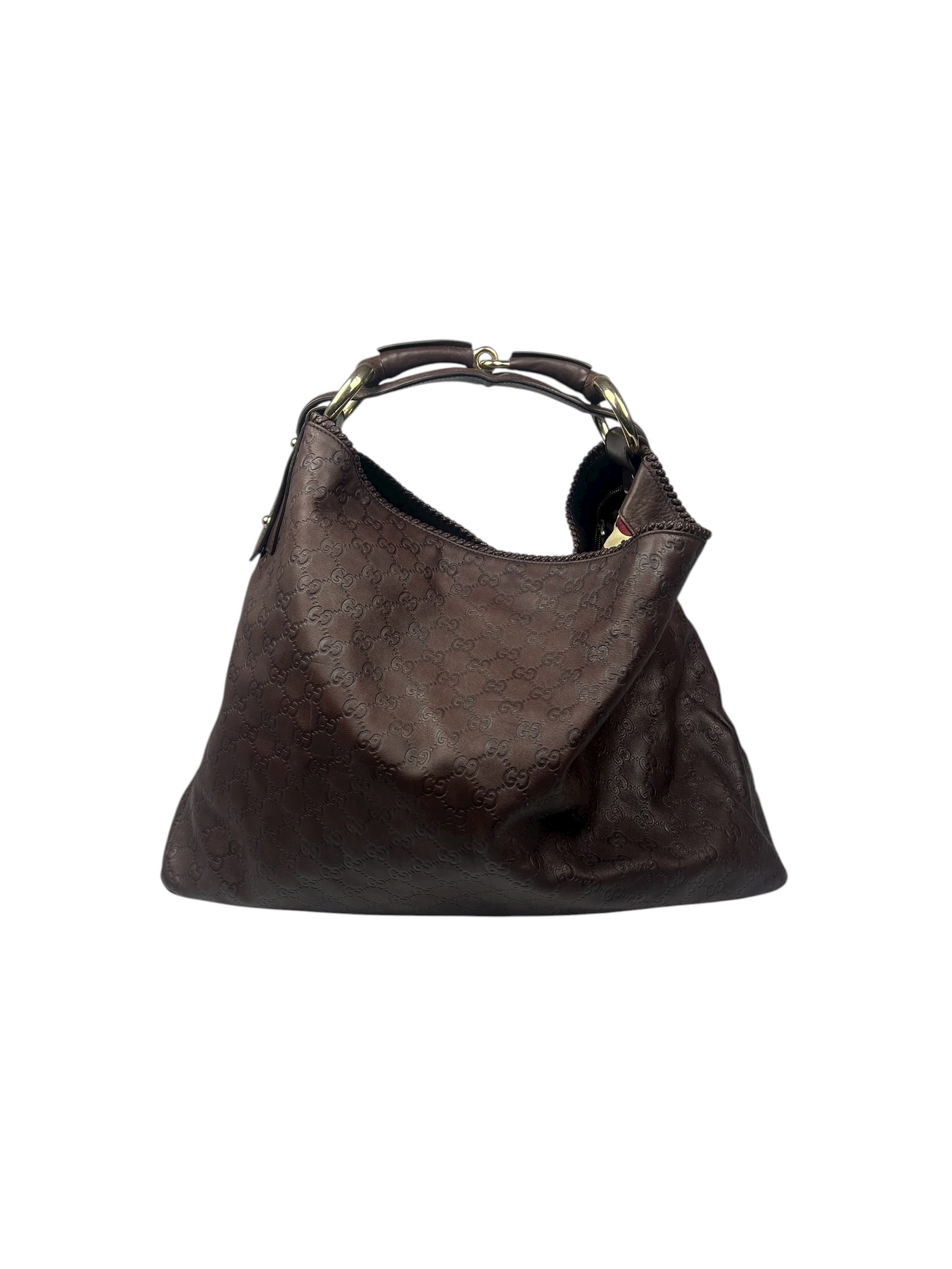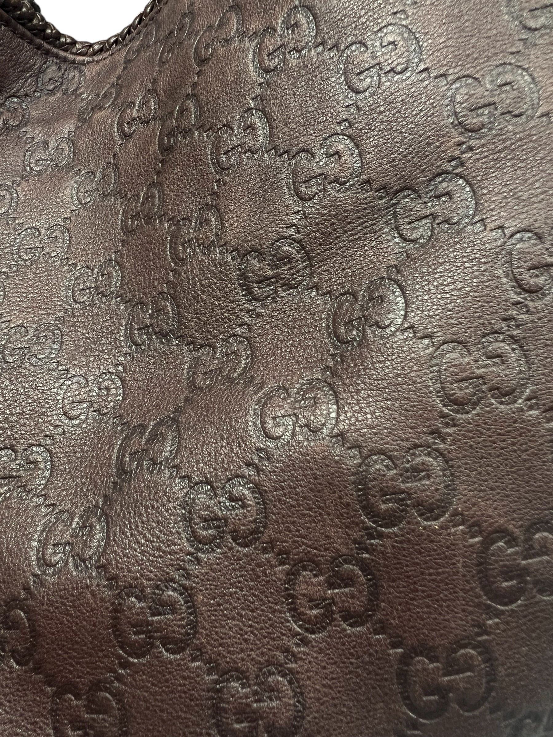 The Big Brown Leather Monogram Bag combines Gucci's iconic monogram design with a generously proportioned silhouette, making it an exceptionally versatile accessory for daily use. Crafted in rich brown leather, this bag accommodates everything from everyday essentials to larger items without compromising on style. The structured design maintains its shape while the spacious interior ensures practical functionality.