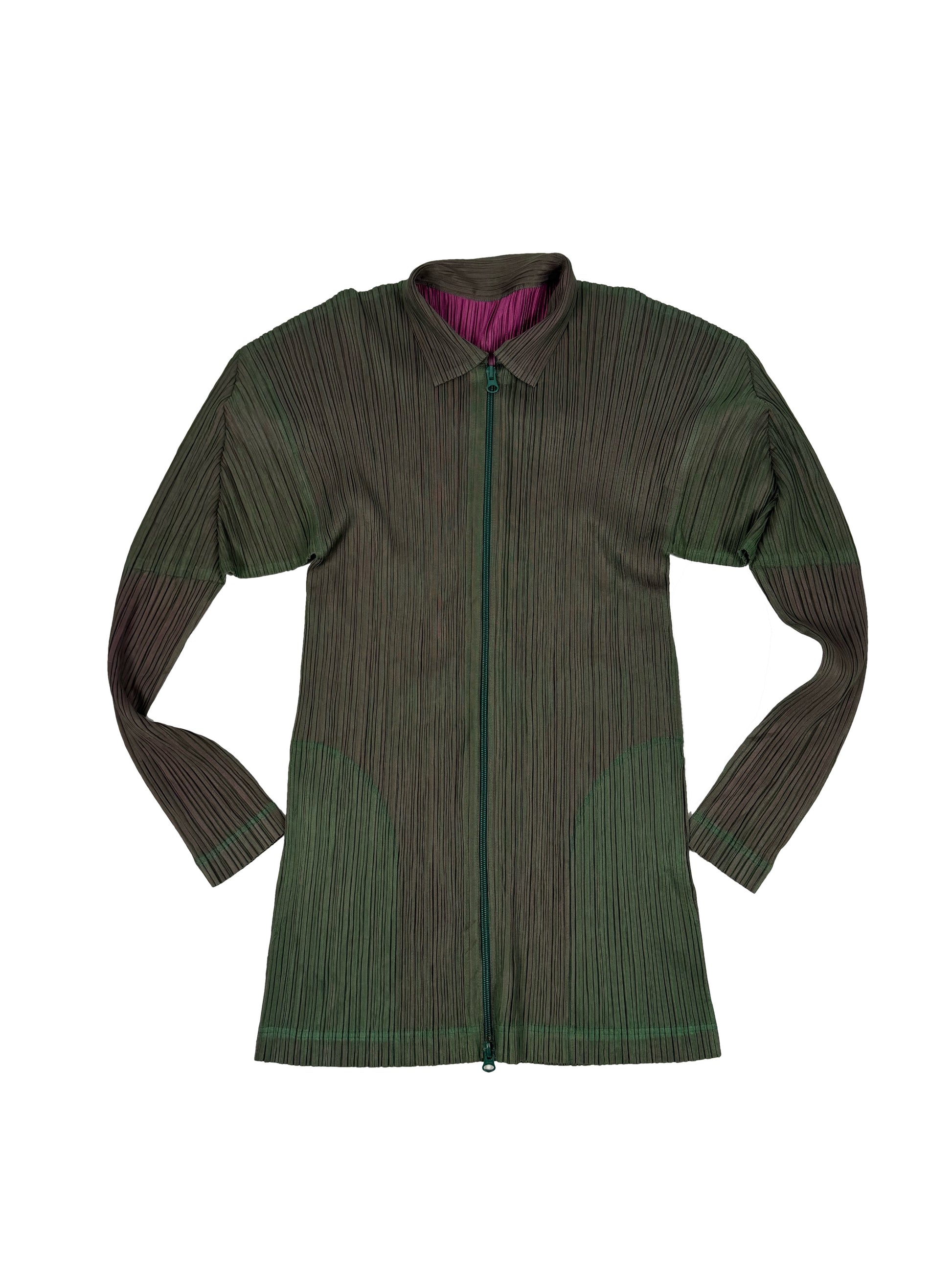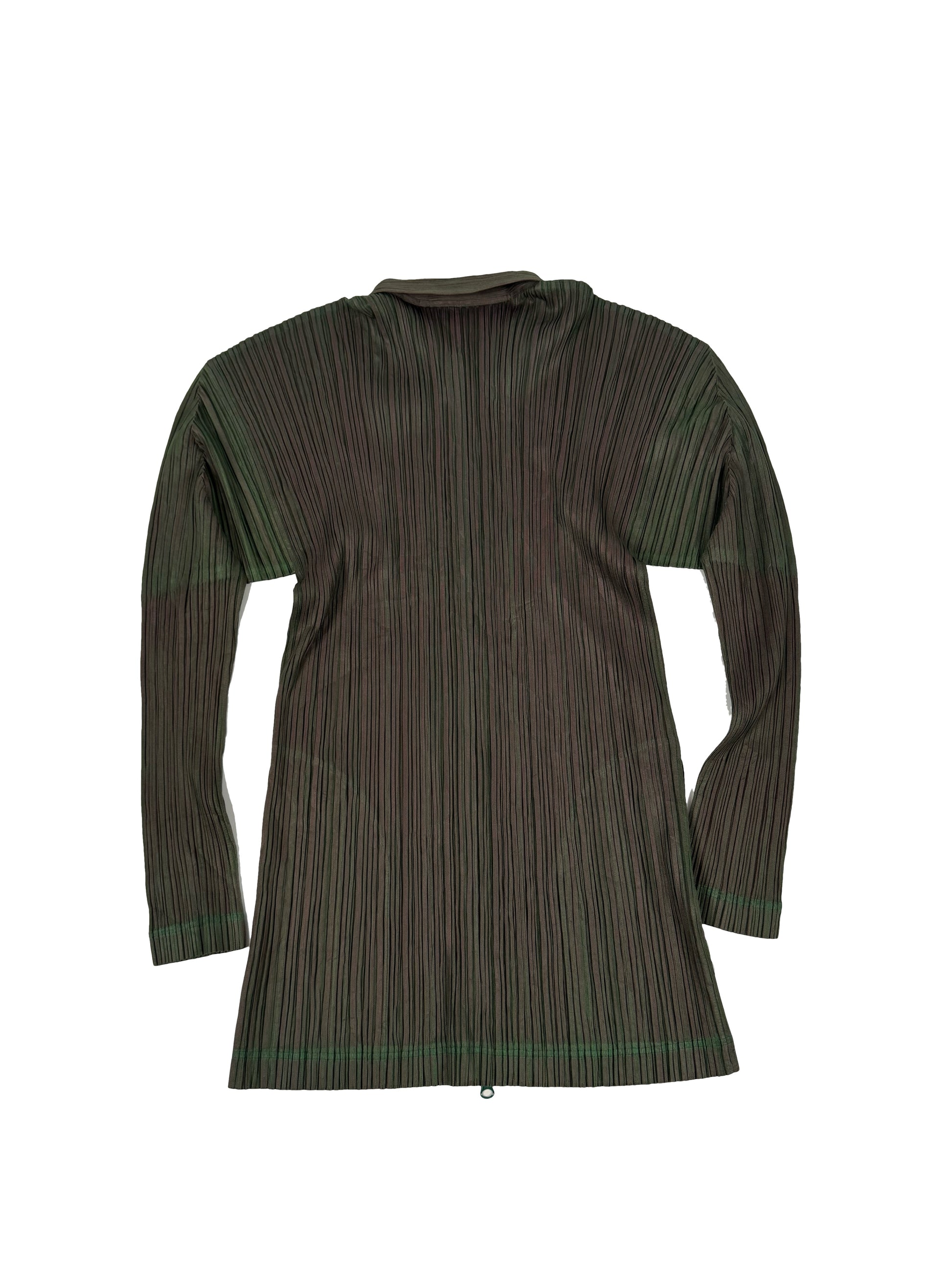 The Green/Pink Pleated Zip-Up from Issey Miyake’s Pleats Please collection showcases expert craftsmanship with its signature pleated texture. The harmonious blend of green and pink hues adds depth and subtle vibrancy, creating a refined yet playful garment. Designed for both comfort and a distinctive aesthetic, this zip-up offers versatility while maintaining the innovative style synonymous with Pleats Please. Its unique pleating provides ease of movement and durability, making it a sophisticated choice for modern wardrobes.