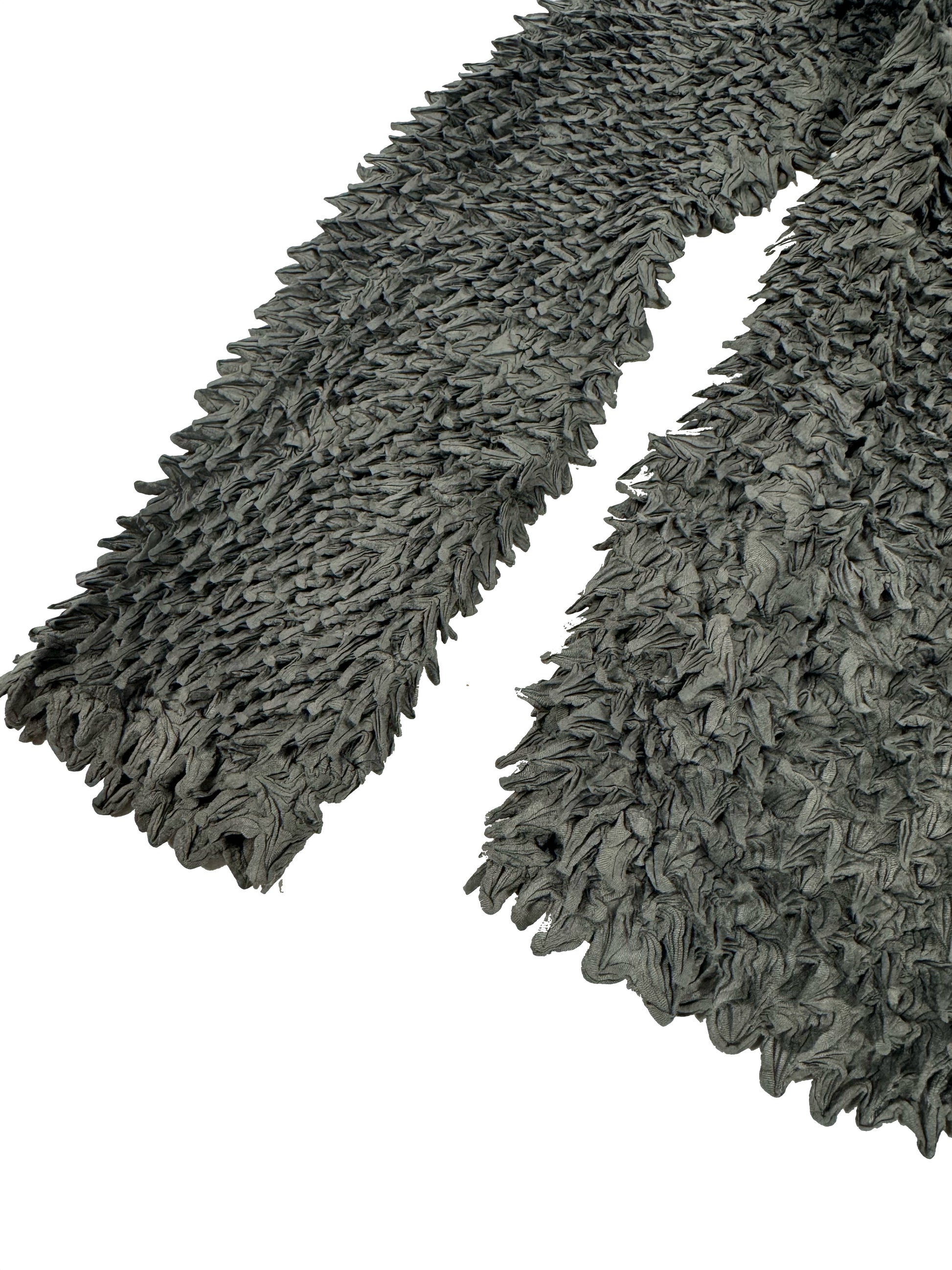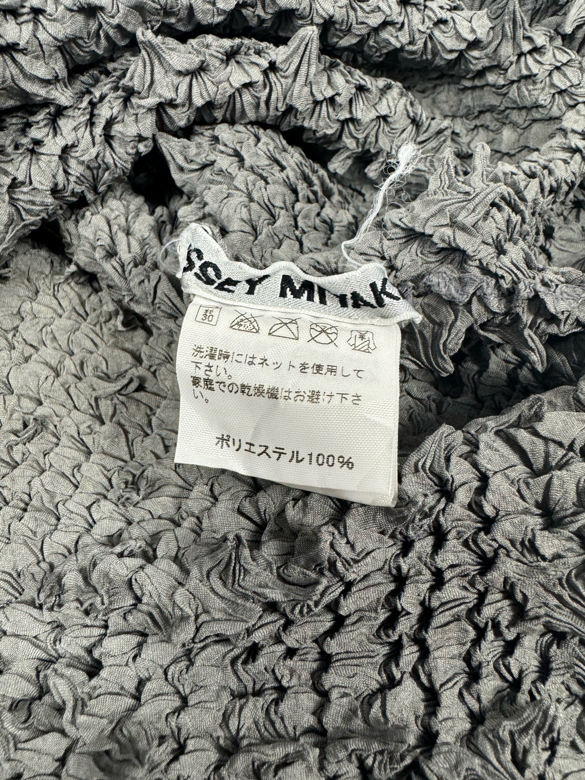 This Grey Spikes Pleated Top by Issey Miyake showcases innovative design with its signature pleating and unique spike details. Each spike is carefully crafted to be adjustable, allowing you to customize the texture and silhouette of the garment. Combining avant-garde artistry with functional wearability, this top elevates your wardrobe with a blend of sculptural form and dynamic movement. Perfect for those seeking a bold yet sophisticated fashion statement.