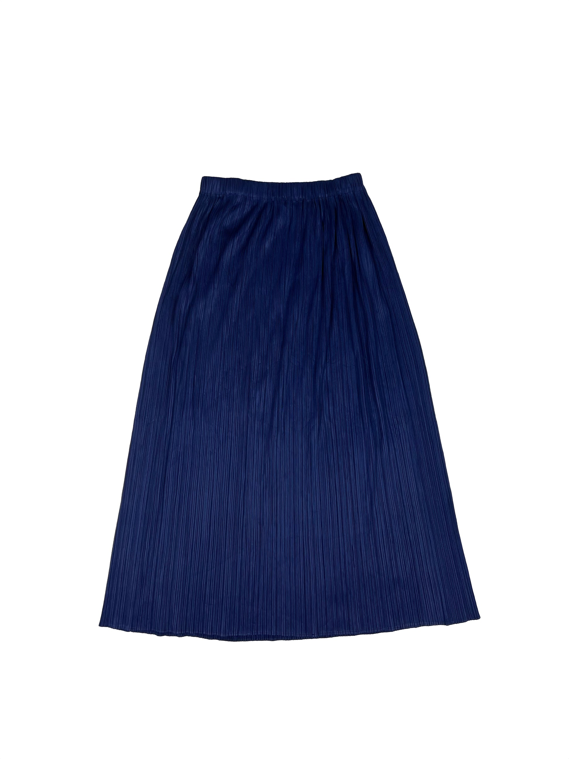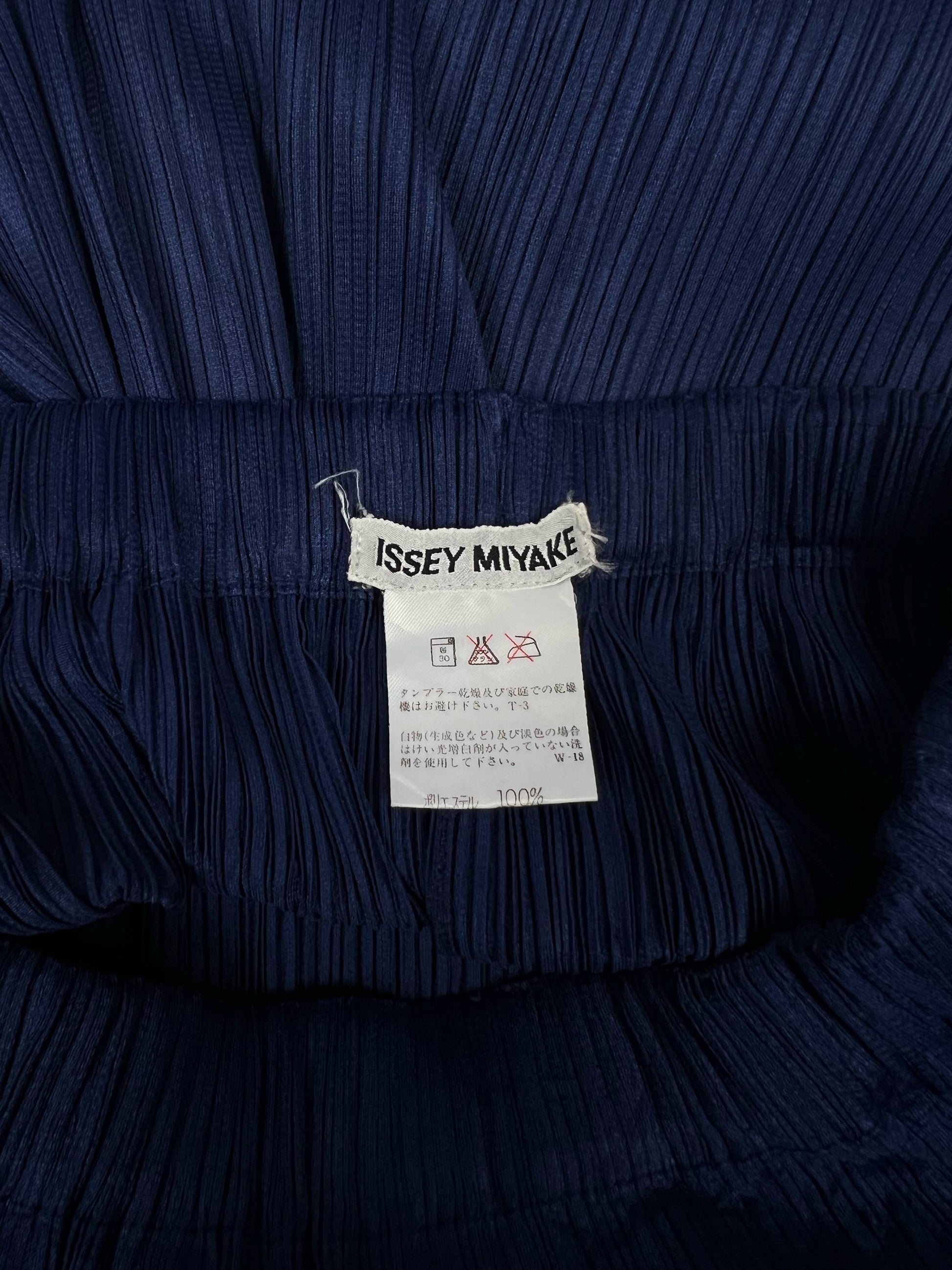 This Issey Miyake blue pleated skirt showcases the brand’s signature mastery of fabric manipulation. Crafted from deep blue material, it features intricate pleating throughout, creating a structured yet fluid silhouette that moves gracefully. The skirt combines innovative textile technology with timeless design, offering exceptional drape and texture that elevate any wardrobe with understated elegance. Ideal for those seeking a refined piece that balances artistic expression and wearability.