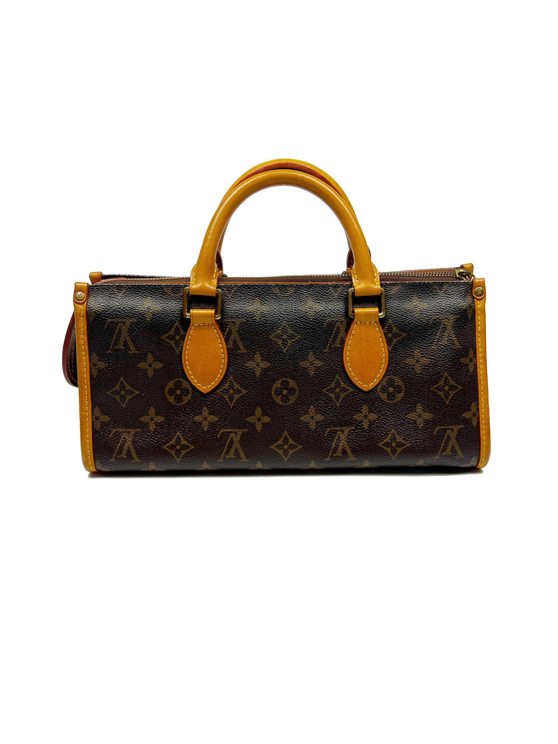 The 2006 Popincourt Triangle Bag by Louis Vuitton showcases exceptional craftsmanship in rich brown leather, adorned with the iconic Louis Vuitton monogram pattern throughout. Its distinctive triangular silhouette offers a unique, sophisticated edge while providing practical space for daily essentials. This statement piece blends timeless elegance with modern design, perfect for those who appreciate luxury and refined detail.
