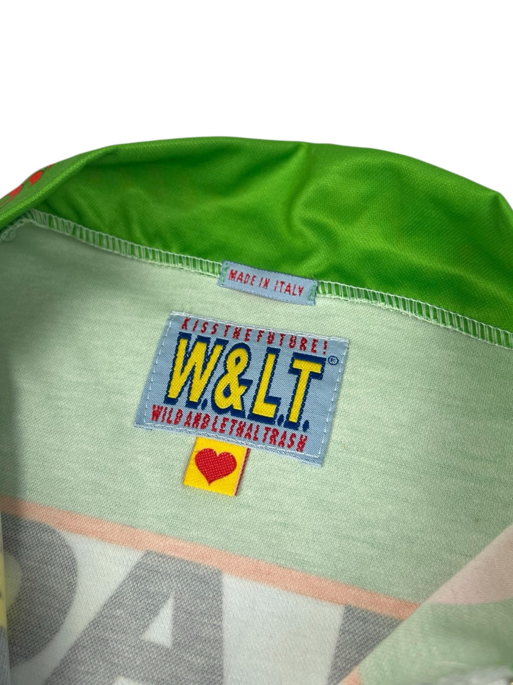 A rare archival piece from Walter Van Beirendonck's W< subline, this cycling shirt features the iconic Black Swans print from the legendary Spring/Summer 1996 'Killer / Astral / Travel' collection. Runway-worn and steeped in '90s avant-garde fashion history, this garment exemplifies the Belgian designer's visionary approach to conceptual sportswear.